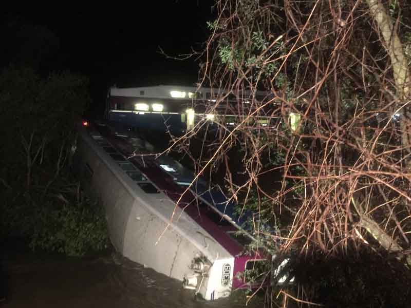 Un árbol caído sobre las vías presuntamente provocó que un tren de pasajeros descarrilara en el norte de California