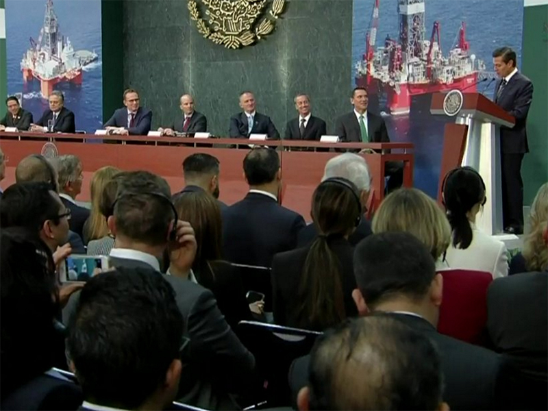 El presidente Enrique Peña Nieto encabeza la firma del contrato en aguas profundas del Bloque Trión
