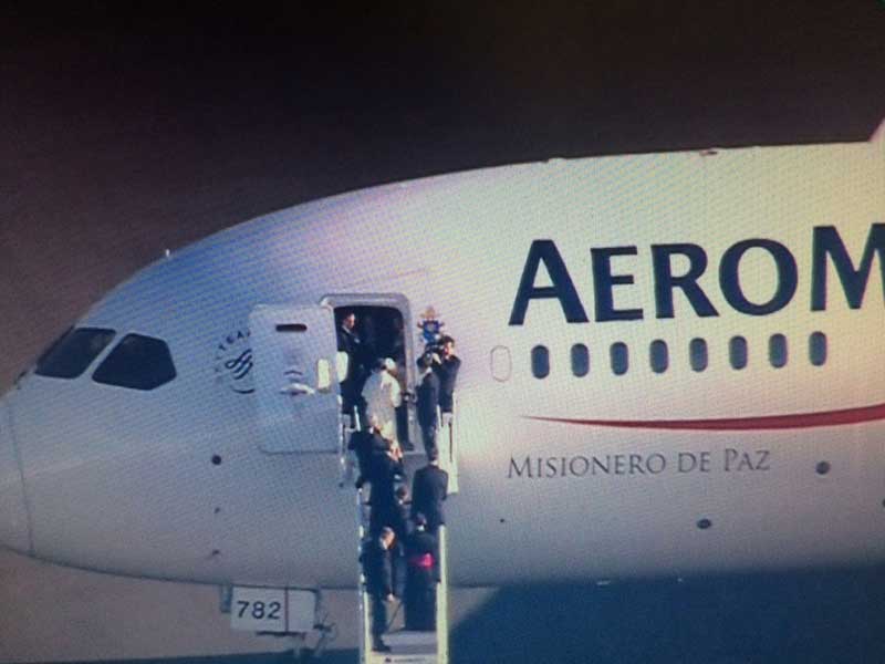 El papa Francisco abordó en la Ciudad de México el avión que lo traerá a Ciudad Juárez, su última parada de su gira apostólica.