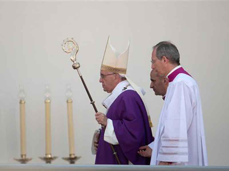 Antes de que el Papa llegara al estadio donde ofició una misa con sacerdotes, religiosos y seminaristas, el maestro de ceremonias rogó oraciones por las familias, los sacerdotes y las vocaciones y, a continuación, pidió un minuto de silencio por "los 43"