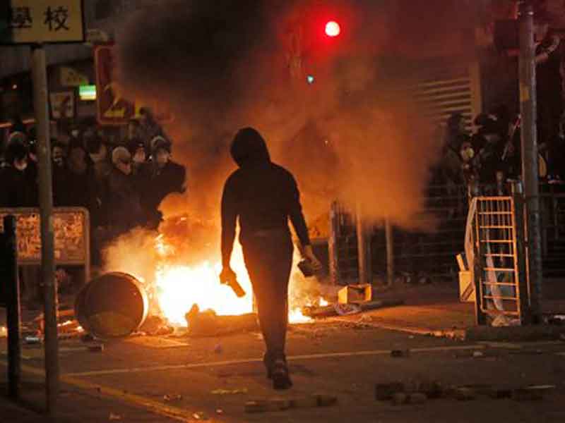 La celebración del Año Nuevo lunar en Hong Kong derivó en caos por los intentos de las autoridades para combatir el comercio ambulante de alimentos en un concurrido vecindario de Kowloon