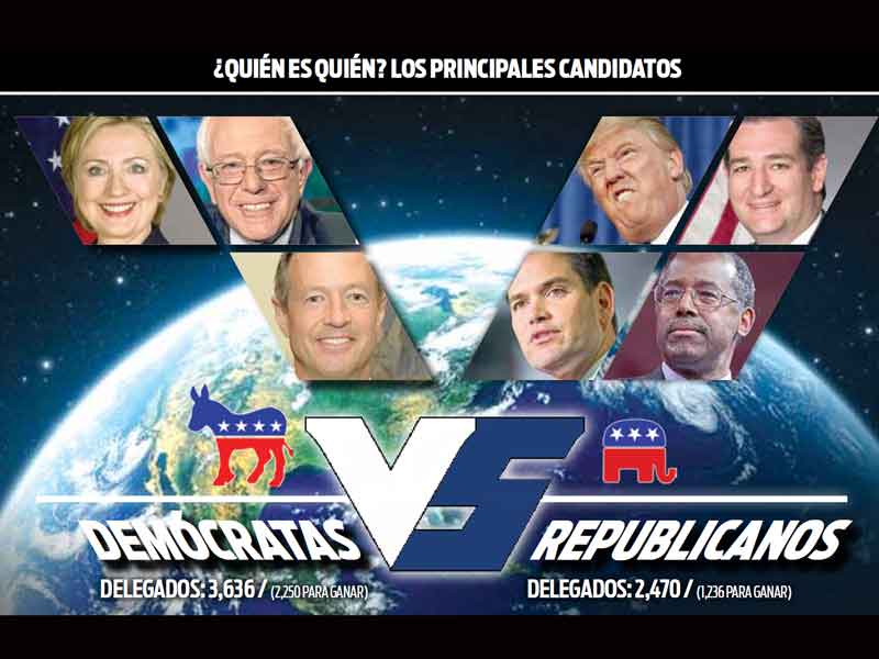 Tres aspirantes demócratas y cuatro republicanos son los mejor posicionados para ocupar el Despacho Oval para el periodo 2016-2020