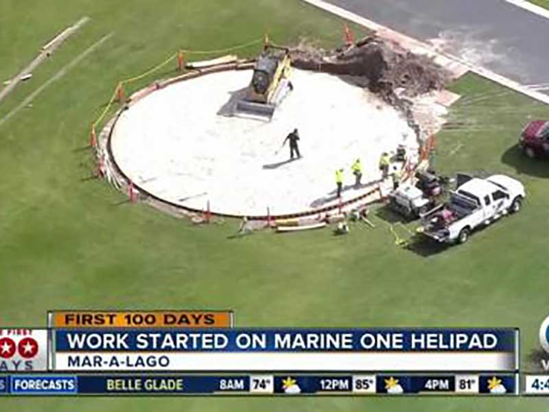 Es una plataforma de cemento reforzado con acero de 8 pulgadas de ancho y 50 pies de largo, dista 300 pies de las edificaciones de Mar-a-Lago, según el arquitecto Rick González, autor del proyecto
