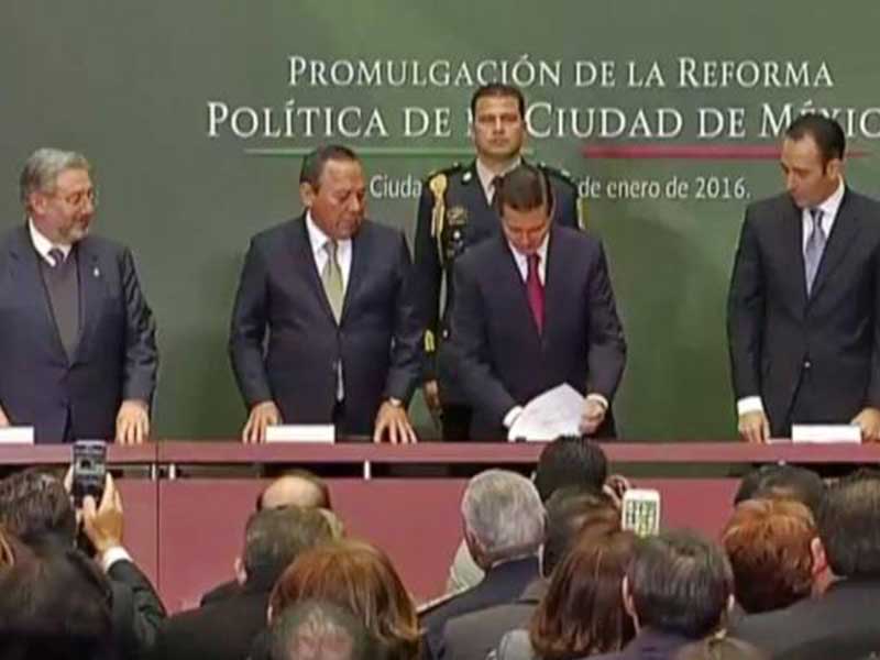 El mandatario estuvo acompañado del jefe de Gobierno, Miguel Ángel Mancera, quien impulsó la iniciativa y quien contará con nuevas facultades