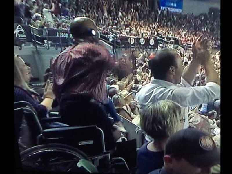 Tras un punto de Roger en el tercer set en el que luchaba por romper el saque al serbio, la cámara captó a un minusválido levantándose de su silla