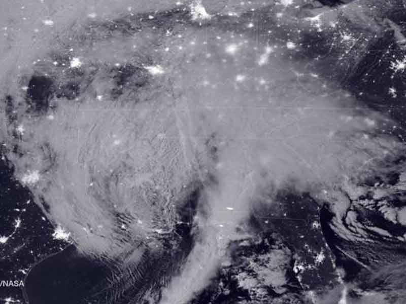 La imagen de satélite muestra una tempestad de nieve que se desplaza por la costa este del país
