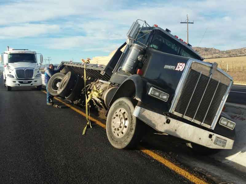 Cae trailer en canaleta de la Chihuahua- Cuauhtémoc