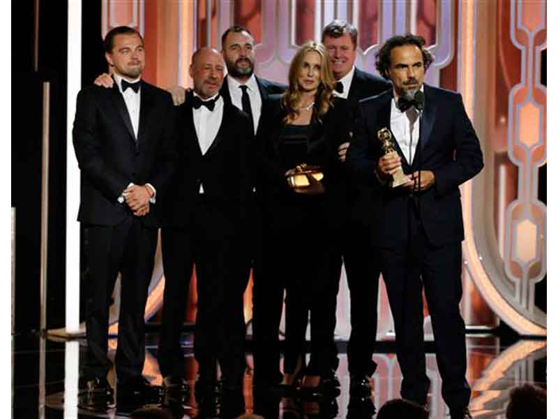 Leonardo DiCaprio tampoco se fue con las manos vacías, al ganar como Mejor Actor Dramático por 'The Revenant'
