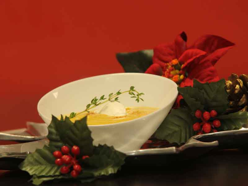 Cortar la calabaza en trozos y colocar en una olla; cubrir la calabaza con la mitad de leche y la mitad de agua. Cocinar hasta que este suave