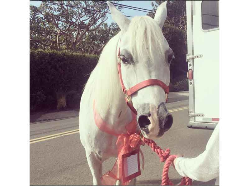 La protagonista de ‘American Horror Story: Hotel’ encontró en la puerta de su casa un pony que su casa disquera le regaló