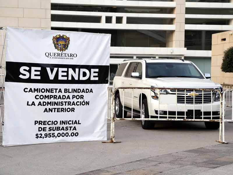 Como en venta de garaje, el Edil colocó en la entrada del edificio, junto a un letrero de "se vende", la camioneta tipo Suburban 2005 con blindaje nivel 5