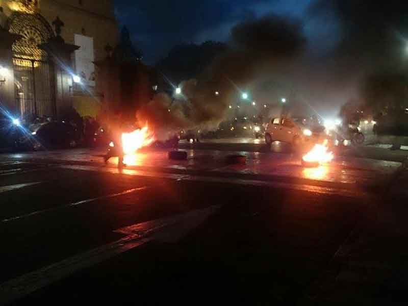 En protesta por los detenidos, estudiantes normalistas quemaron neumáticos en el Centro Histórico de Morelia