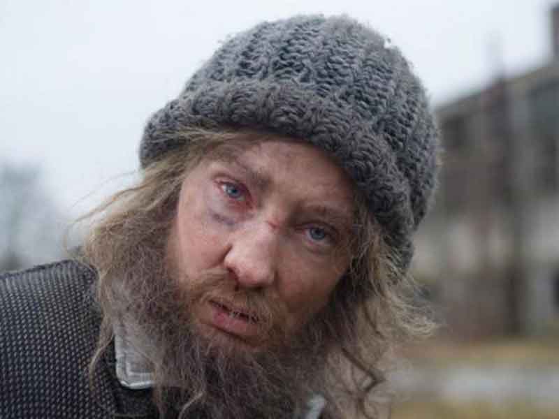 La piel usualmente clara y pulcra de Cate Blanchett luce sucia y desmejorada