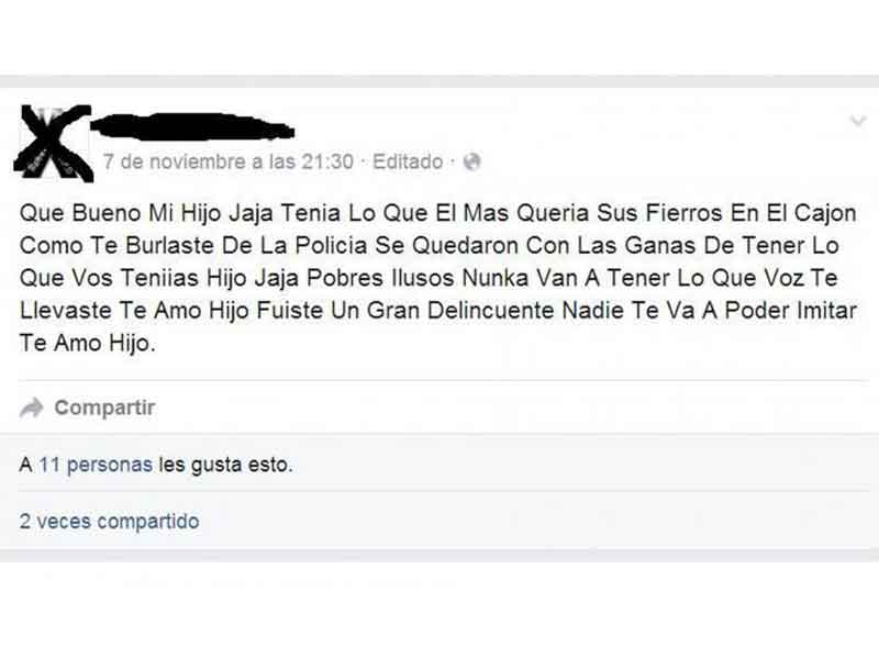 Fue asesinado hace una semana en Argentina. "Como te burlaste de La Policía", escribió la mujer