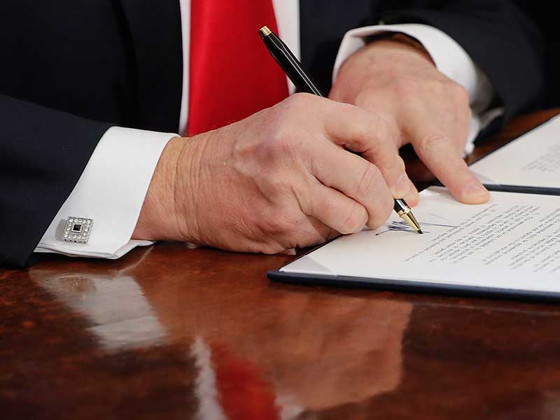 El último pedido de la Casa Blanca a Cross fue de 350 plumas chapadas en oro para que el mandatario firme sus órdenes ejecutivas, pues acostumbra regalarlas a los asistentes