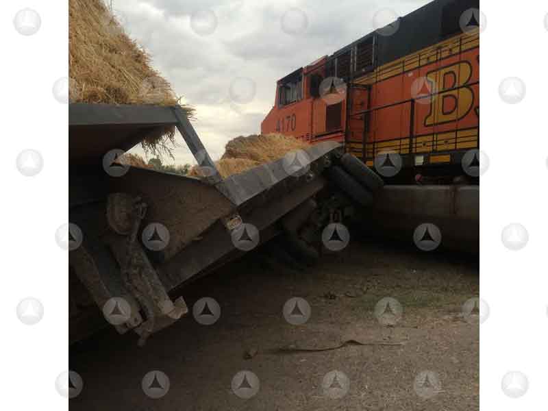 Tren arrolla tráiler con pastura en Villa Ahumada