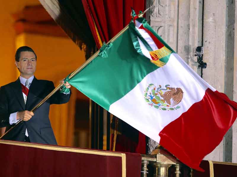 En punto de las 23:00 horas, junto con su esposa, Peña Nieto salió al balcón de Palacio Nacional para lanzar la arenga ante los asistentes