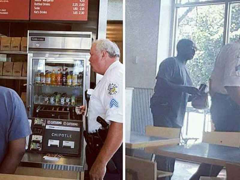El sargento Hagarty estaba almorzando cuando vio que el indigente rebuscaba en la basura, lo invitó a entrar, le pagó la comida y estrechó su mano; testigos compartieron la historia en las redes sociales