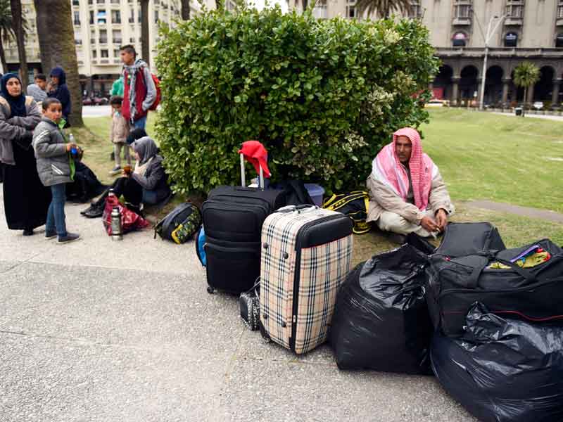 Las cinco familias sirias que llegaron a Uruguay en 2014 en un plan de refugio se concentraron frente a la sede de la presidencia para pedir que les permitan regresar al Líbano, molestas con el programa de acogida del gobierno uruguayo