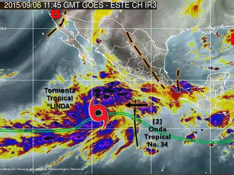 "Linda", detalló el Servicio Meteorológico Nacional (SMN) en un comunicado, provocará lluvias fuertes en Baja California Sur, Sinaloa, Nayarit, Jalisco, Colima y Michoacán