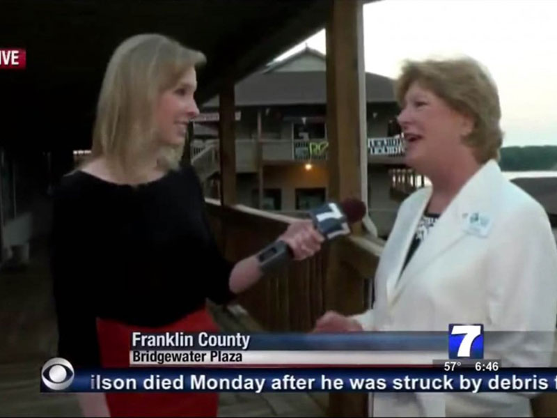La responsable de la Cámara de Comercio que respondía a las preguntas de una reportera sobre su comunidad en una entrevista en vivo para la televisión cuando comenzó la balacera dijo que no vio como el pistolero se acercaba al grupo.