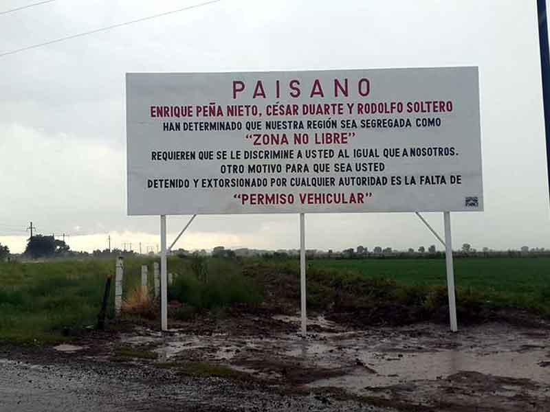 Los mensajes fueron instalados el viernes, informó Julián LeBarón, líder de la agrupación conformada por numerosos ciudadanos de la zona