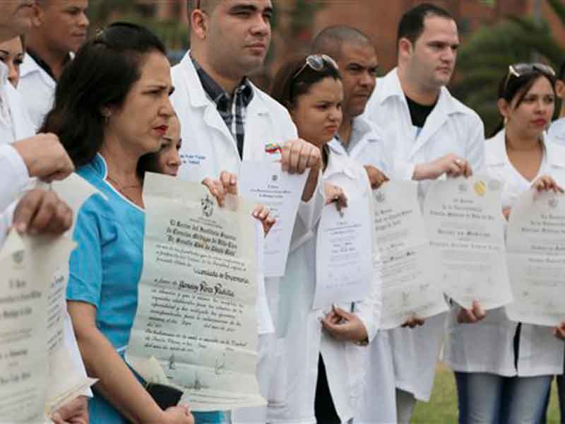 Al menos 100 médicos cubanos protestaron luego de pasar meses varados en Bogotá a la espera de que Estados Unidos les otorgue una visa especial