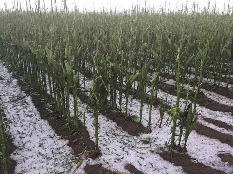Una fuerte granizada dejó severos daños en plantíos de maíz y huertas manzaneras en la región de Cuauhtémoc
