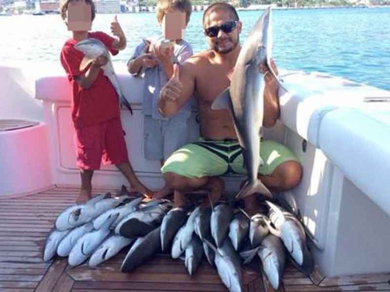 Joaquín Badillo, ex candidato del PVEM en Acapulco, publicó fotos donde se le ve con más de 20 ejemplares; Profepa determina que la especie es tiburón sedoso o piloto