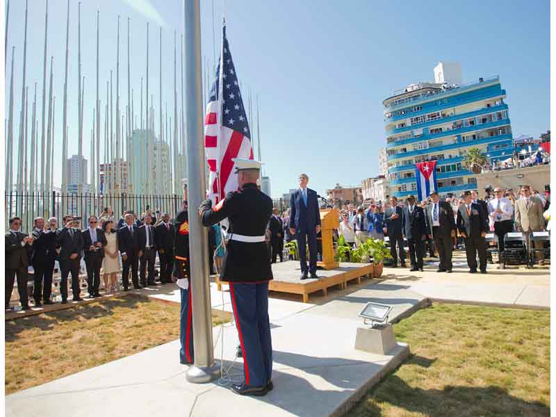 La bandera estadounidense comenzó a flamear en la nueva embajada de ese país en La Habana el viernes tras una ceremonia encabezada por el secretario de Estado John Kerry