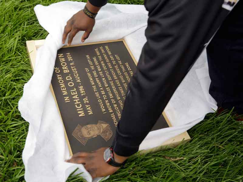 Centenares de personas que se congregaron para conmemorar a Brown enmudecieron a las 12.02, la hora en que murió, y prolongaron el silencio para simbolizar las cuatro horas y media en que el cadáver yació en la calle después que murió