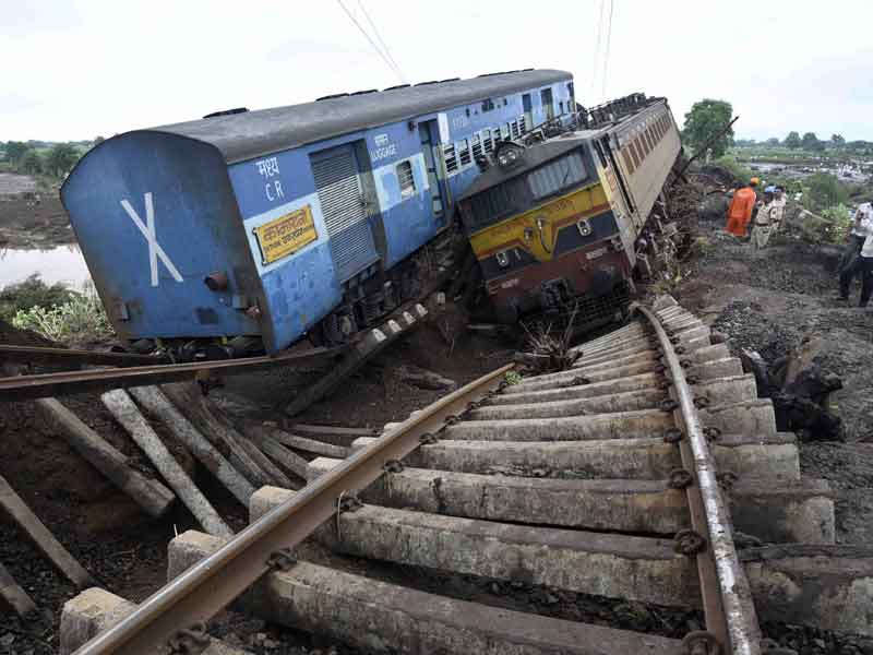 Los trenes estaban cruzando un puente sobre el río Macjak, crecido por las lluvias, a unos 950 kilómetros (590 millas) al sur de Nueva Delhi