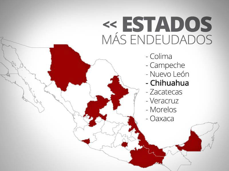 Chihuahua se encuentra en segundo lugar después de Nuevo León; César Duarte triplicó la deuda de 12 mil 47 millones a 41 mil 894 millones al cierre del año pasado, a 29 mil 347 millones