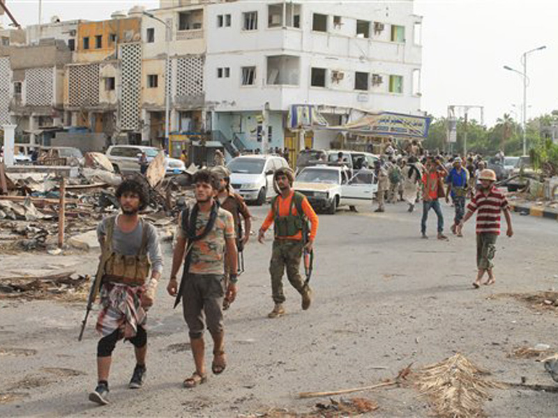 Los combates por tierra estallaron casi de manera inmediata en la ciudad de Taiz luego de ataques con artillería aleatorios de parte de los rebeldes chiítas hutíes en tres vecindarios