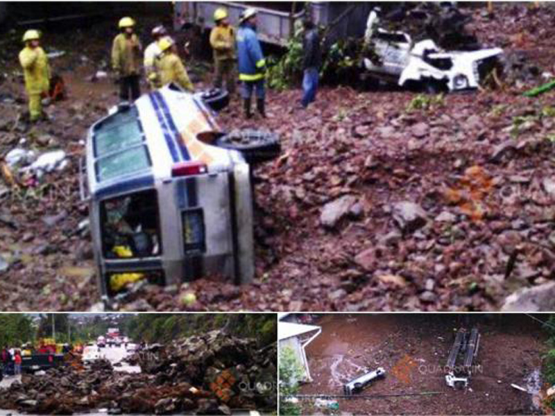 En el lugar quedaron casi una decena de personas atrapadas, además de que un vehículo que cayó desde una altura de 40 metros se impactó contra un negocio particular
