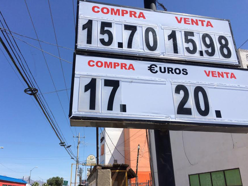 En centros cambiarios de la ciudad el dólar estadounidense se ofrece hasta los 15.98 pesos por unidad.
