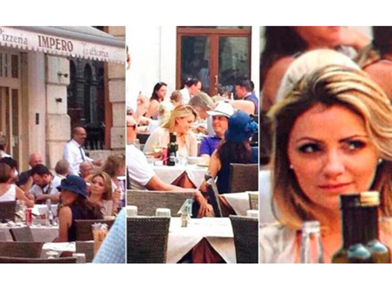 La primera dama fue captada el martes pasado por un turista, mientras se encontraba en un restaurante en la Plaza Bra, de Verona, Italia