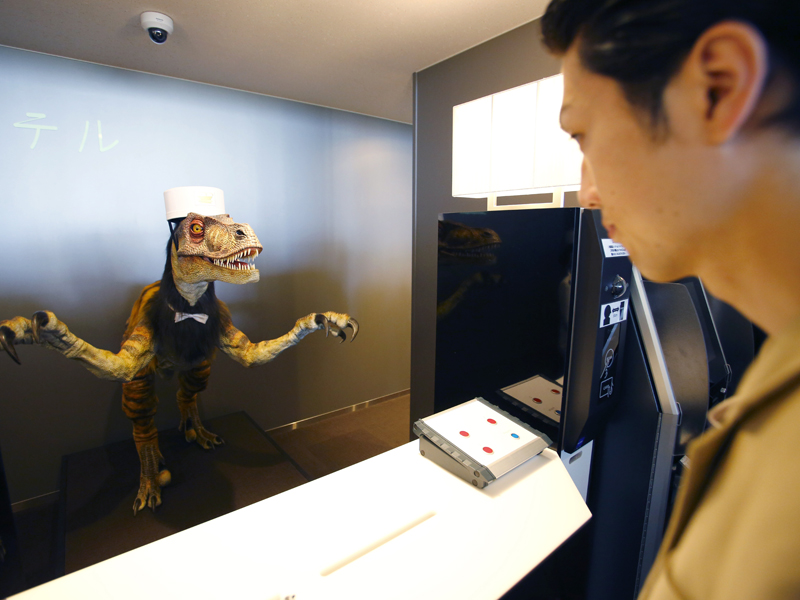 Casi todo el personal del Hotel Extravagante está integrado por robots para ahorrar costos