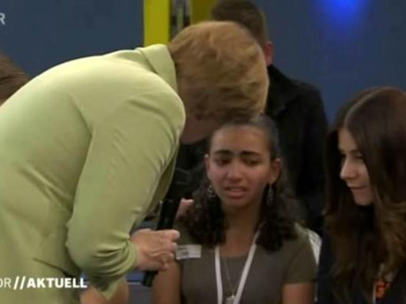Un video del encuentro del miércoles en la tarde muestra a la niña palestina diciendo a Merkel que su familia ha esperado durante años un permiso para permanecer en Alemania