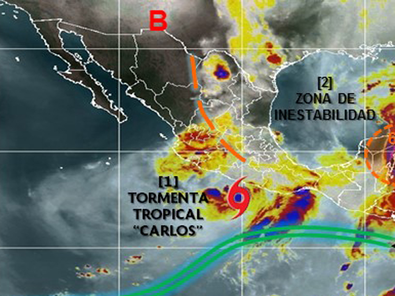 a comisión Nacional del Agua (Conagua) informó que Carlos se ubica a 130 kilómetros al sur-suroeste de Acapulco