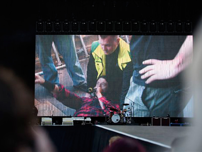 Dave Grohl se cayó del escenario durante un concierto en Suecia y se fracturó la pierna derecha y regresó para seguir con el concierto