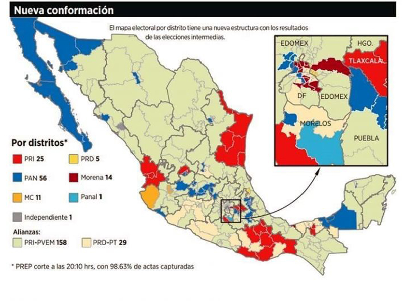 La alianza PRI-PVEM consiguió -hasta el momento- 183 diputaciones federales de mayoría