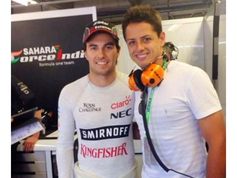 El delantero mexicano visitó los talleres de sus compatriotas Sergio Pérez y Esteban Gutiérrez