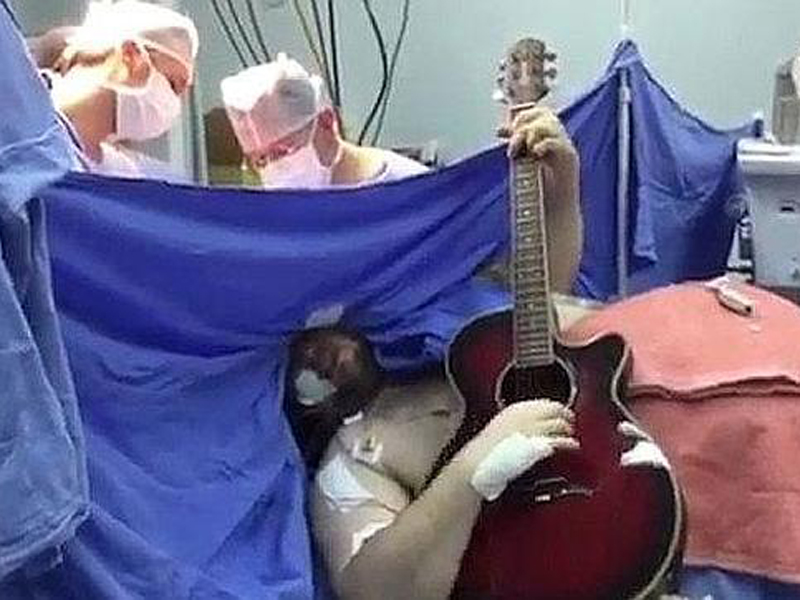 Un trabajador de un banco ha deslumbrado a sus médicos mientras era operado del cerebro puesto que no esperó a mejor ocasión para tocar con la guitarra una canción de los Beatles.