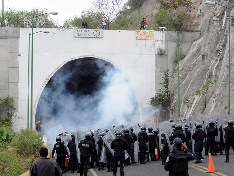 Normalistas de Ayotzinapa que demandan la presentación con vida de sus 43 compañeros desaparecidos en Iguala se enfrentaron con elementos de la Policía Federal y Policía Estatal en el libramiento Chilpancingo-Tixtla.