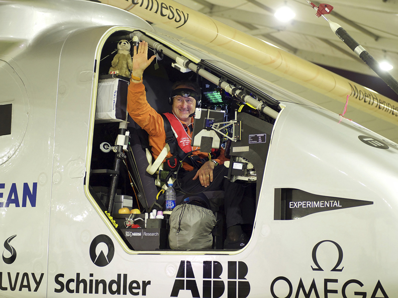 Se embarcó el domingo en el tramo más largo de su primer intento por darle la vuelta al mundo sin una sola gota de combustible
