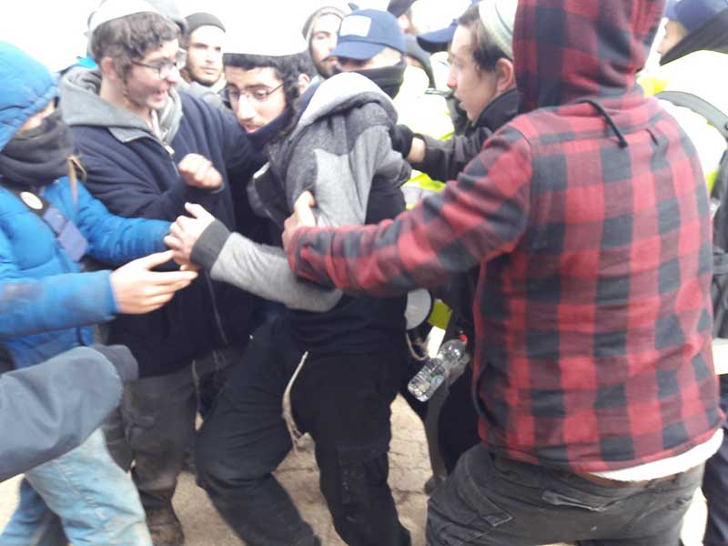 Soldados y policías israelíes rodean la colonia judía de Amoná, en el territorio palestino ocupado de Cisjordania, que en estos momentos está siendo evacuada forzosamente