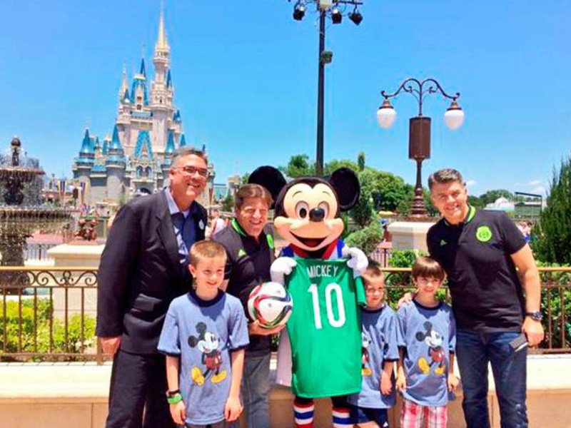 El personaje insignia del parque de diversiones, Mickey Mouse, fue honrado y recibió un regalo por parte de Miguel Herrera