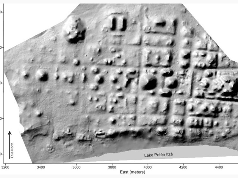 La urbe Nixtun-Ch'ich' tiene un diseño urbano de cuadrante, muy parecido al estilo teotihuacano; en ella se alínean 15 edificios de este a oeste con un mínimo margen de error