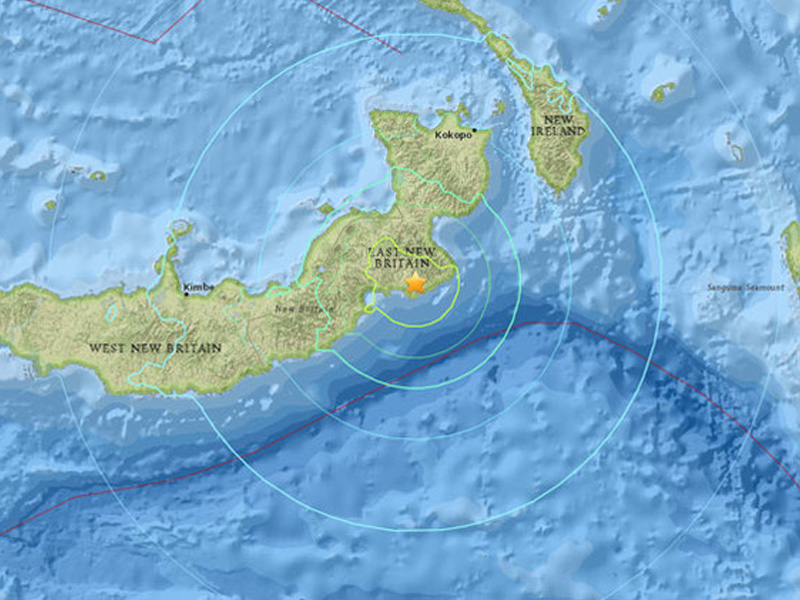 Un tsunami de aproximadamente un metro (3 pies) pudo verse en el puerto de Rabaul